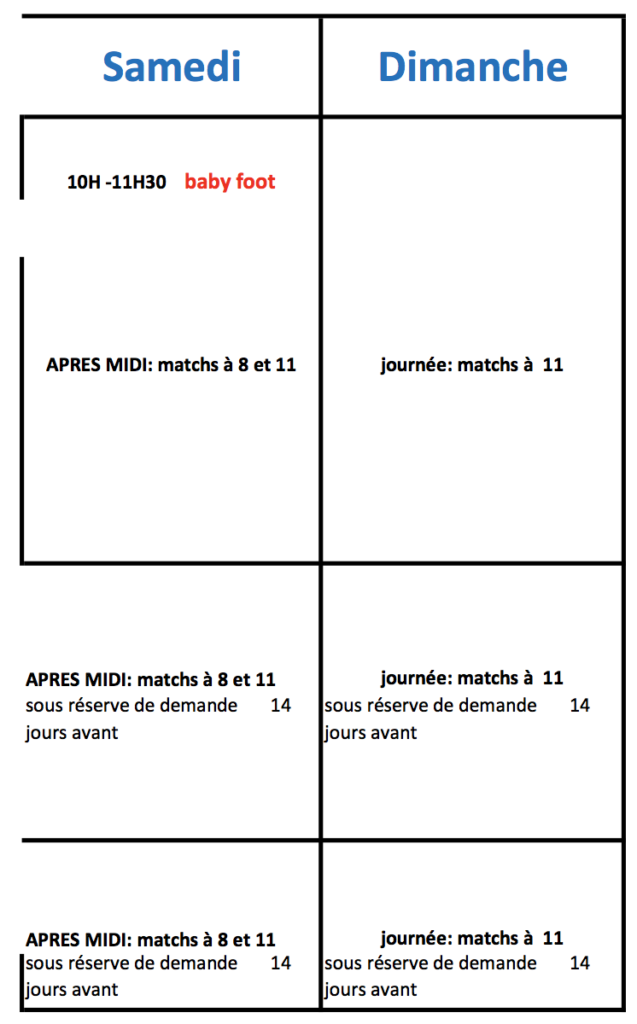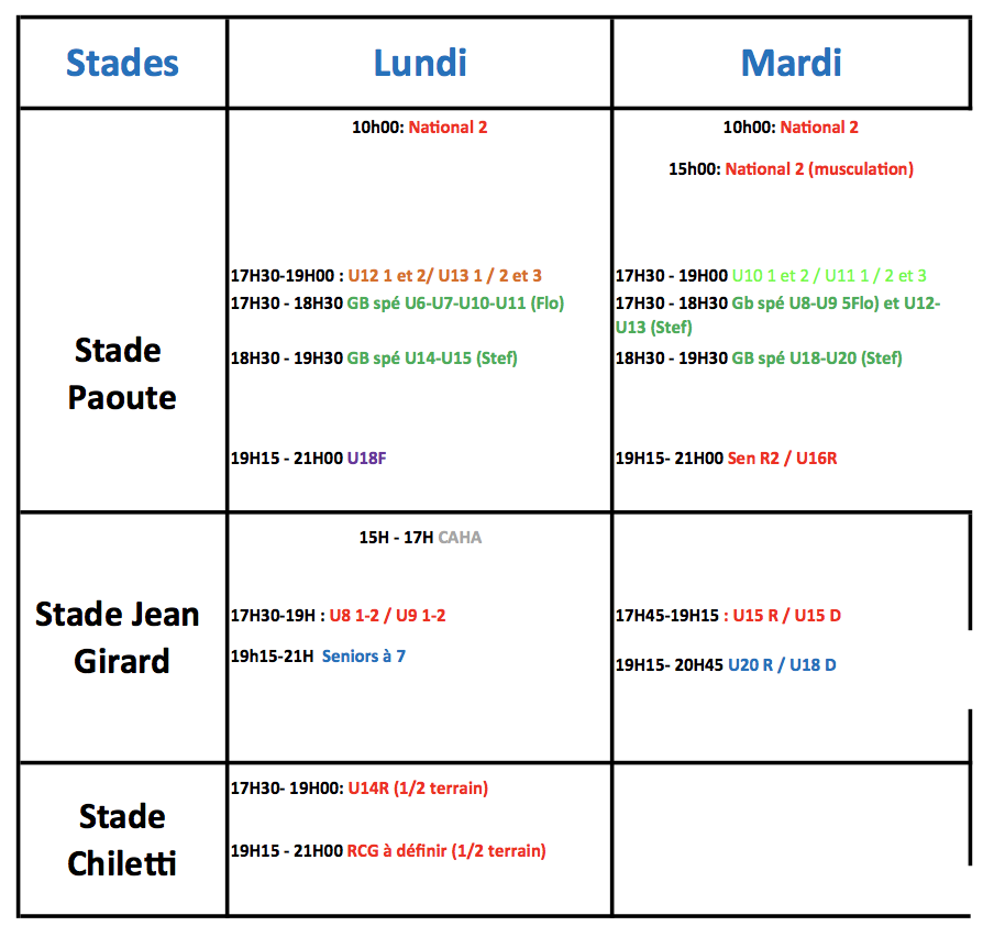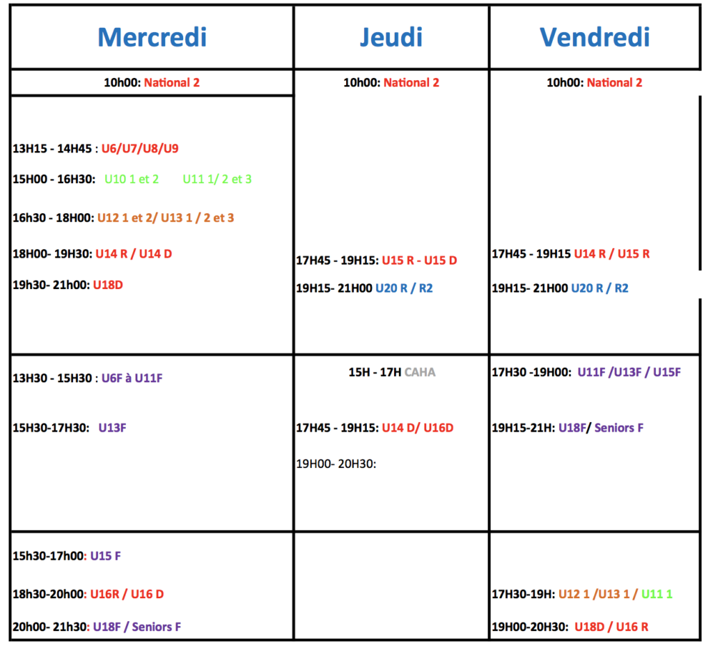 Découvrez le planning d’entraînement 2021-2022 de notre équipe première ainsi que de nos équipes de jeunes et féminines.