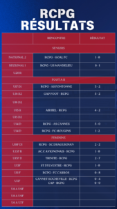 Le planning complet des résultats du week-end du 5 et 6 octobre des équipes du Racing Club Pays de Grasse 🔴🔵