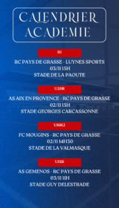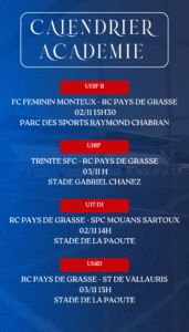 Le planning complet du week-end des équipes du Racing Club Pays de Grasse 🔴🔵