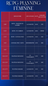 Le planning complet du week-end des équipes du Racing Club Pays de Grasse 🔴🔵