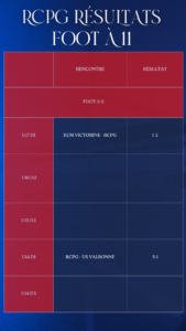 Les résultats complets du week-end du 8 et 9 février des équipes du Racing Club Pays de Grasse 🔴🔵