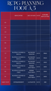 Le planning complet du week-end des équipes du Racing Club Pays de Grasse 🔴🔵