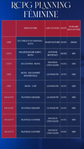 Le planning complet du week-end des équipes du Racing Club Pays de Grasse 🔴🔵