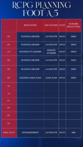Le planning complet du week-end des équipes du Racing Club Pays de Grasse 🔴🔵