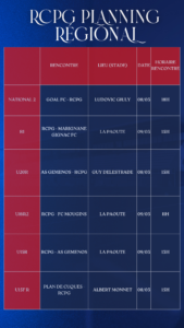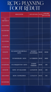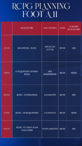 Le planning complet du week-end des équipes du Racing Club Pays de Grasse 🔴🔵