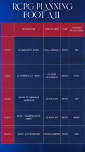 Le planning complet du week-end des équipes du Racing Club Pays de Grasse 🔴🔵