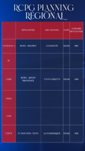 Le planning complet du week-end des équipes du Racing Club Pays de Grasse 🔴🔵