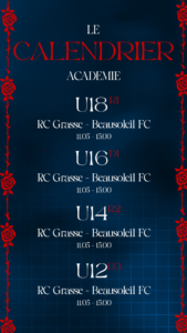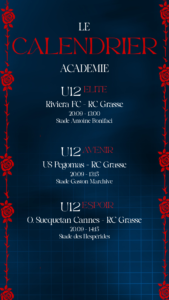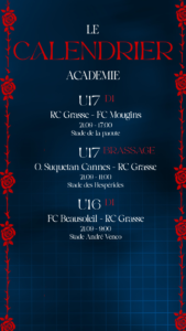 Le planning complets du week-end des équipes du Racing Club Pays de Grasse 🔴🔵