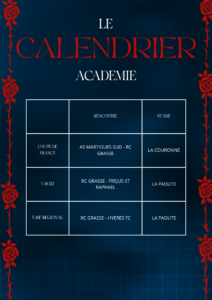 Le planning complet du week-end des équipes du Racing Club Pays de Grasse 🔴🔵