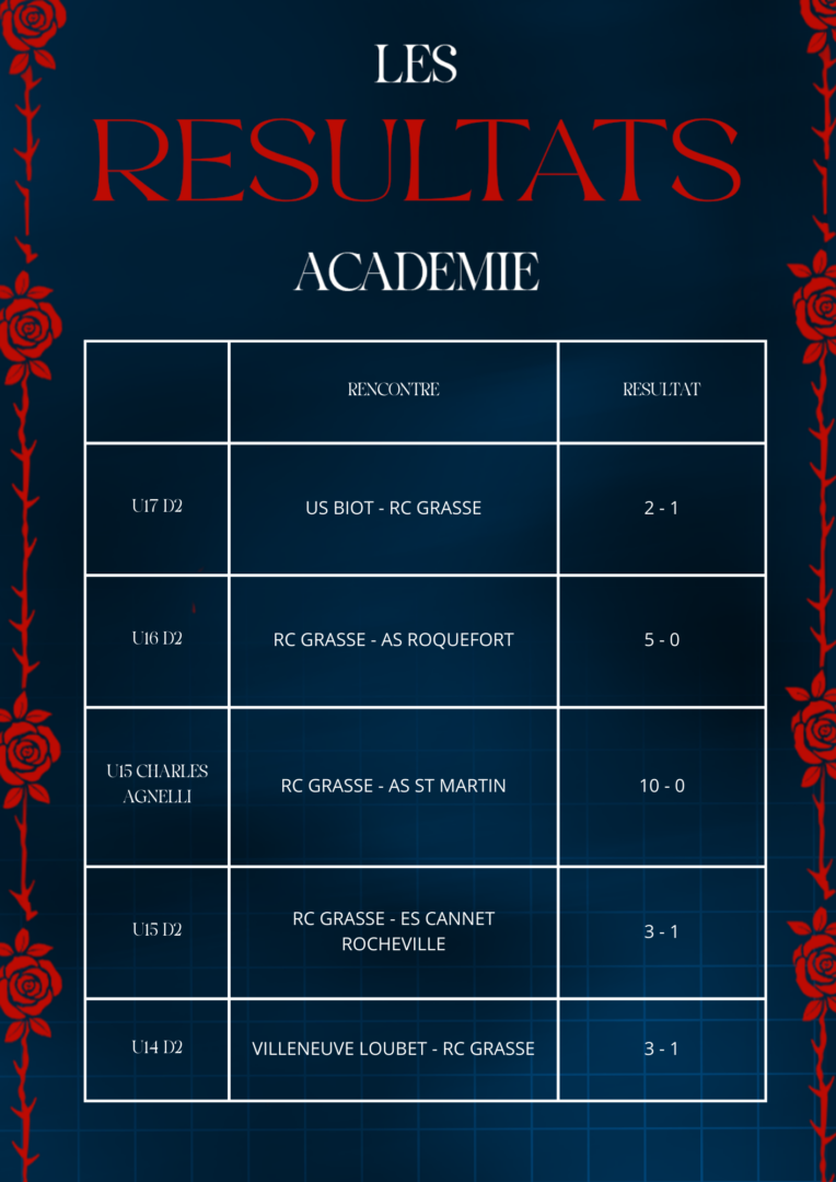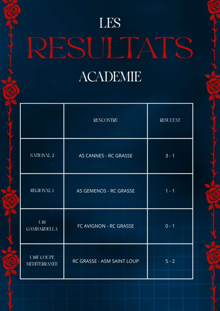 Les résultats complets du week-end pour les équipes du Racing Club de Grasse 🔴🔵