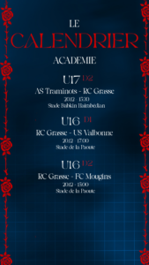 Le planning complet du week-end des équipes du Racing Club de Grasse 🔴🔵