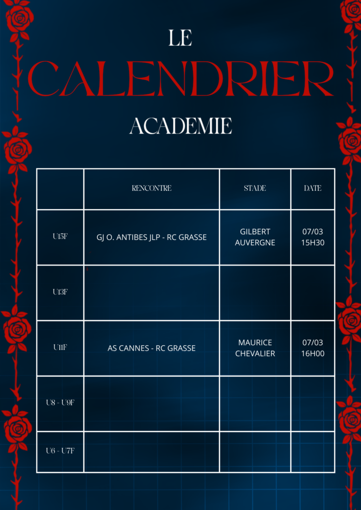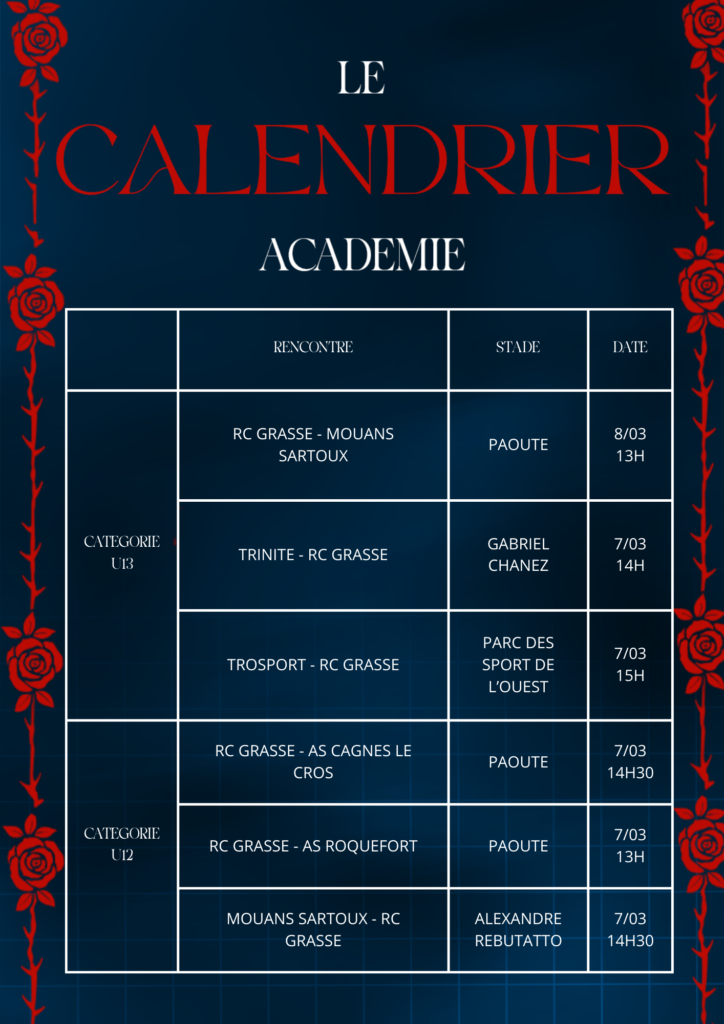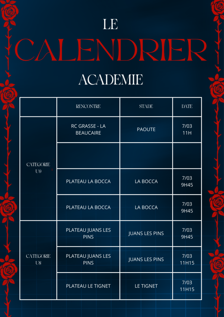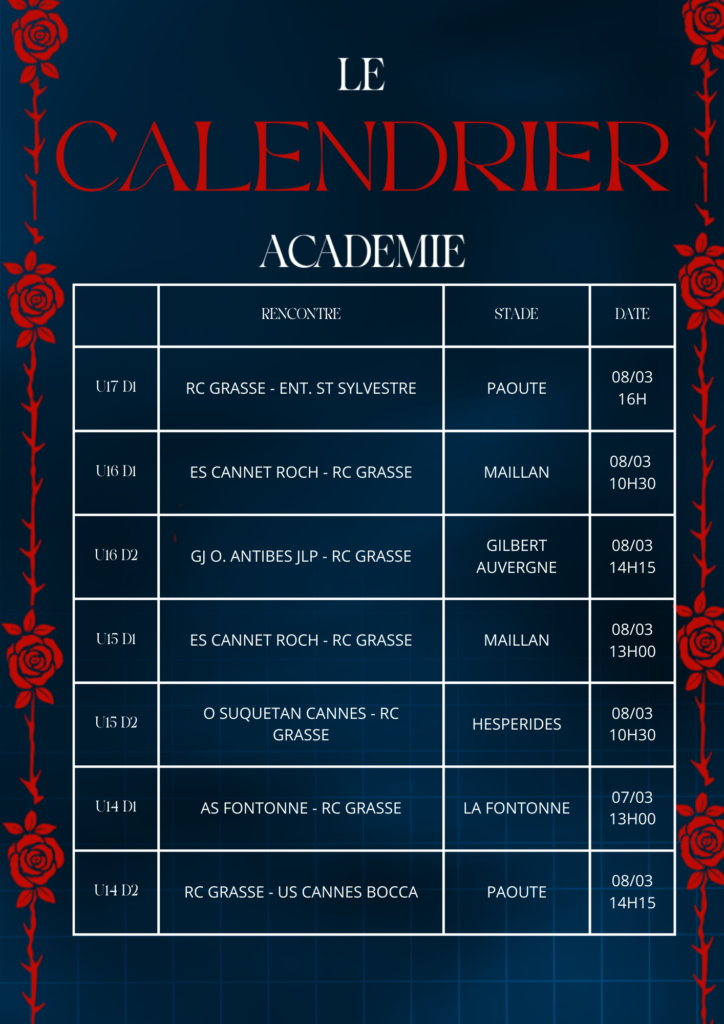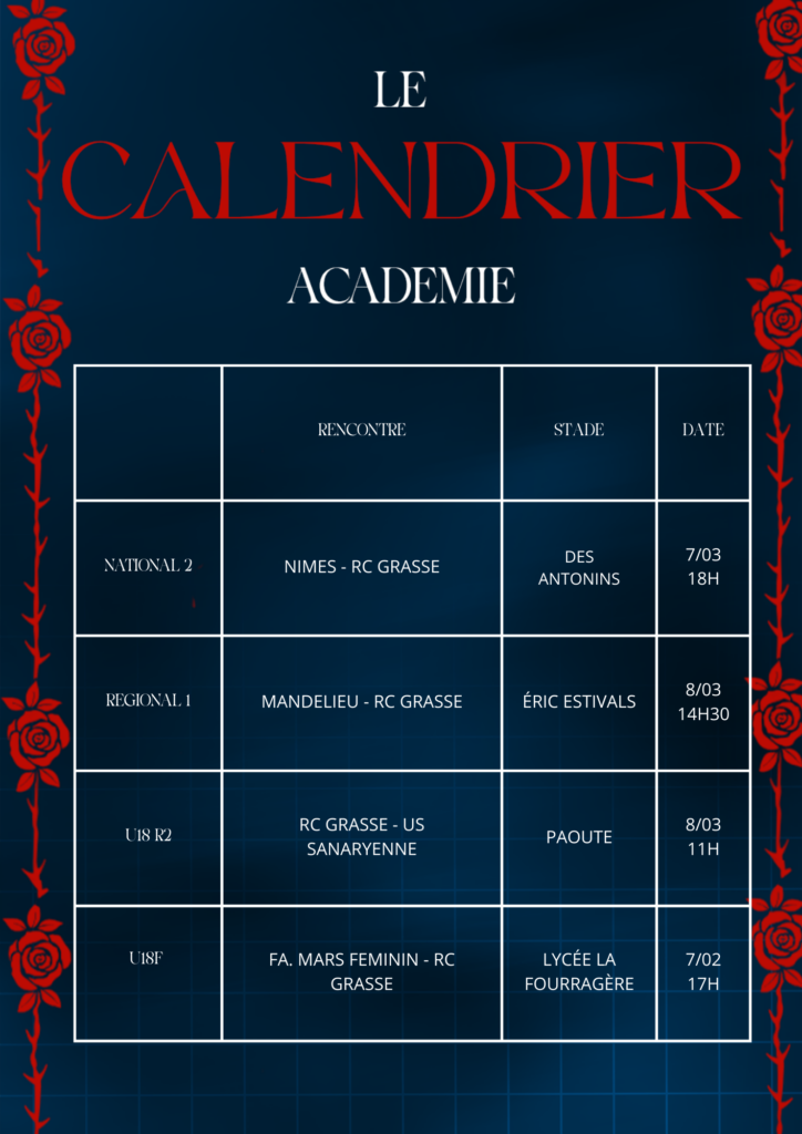 Le planning complet du week-end des équipes du Racing Club de Grasse 🔴🔵