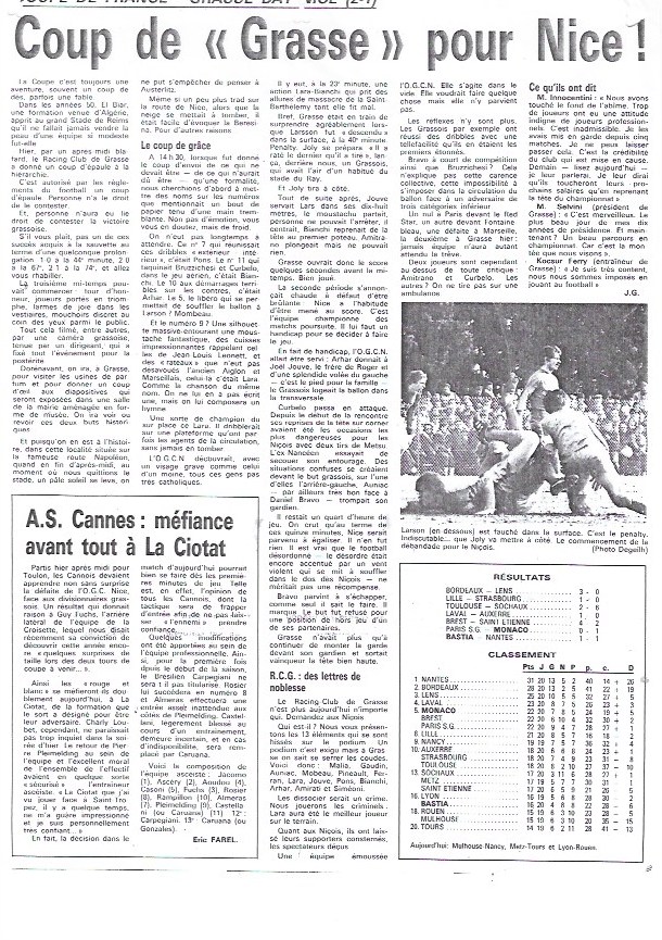 Le deuxième, en 1982. Alors en Division d’Honneur, les Grassois ont sorti le club professionnel de l’OGC Nice avec un certain Daniel Bravo dans ses rangs.